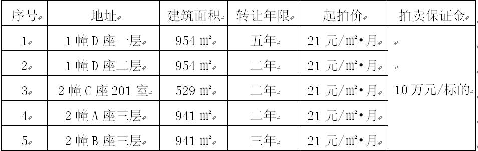 一、拍賣標(biāo)的:杭州市江干區(qū)九環(huán)路63號(江干科技經(jīng)濟(jì)園)五處廠房使用權(quán)轉(zhuǎn)讓,詳情如下: