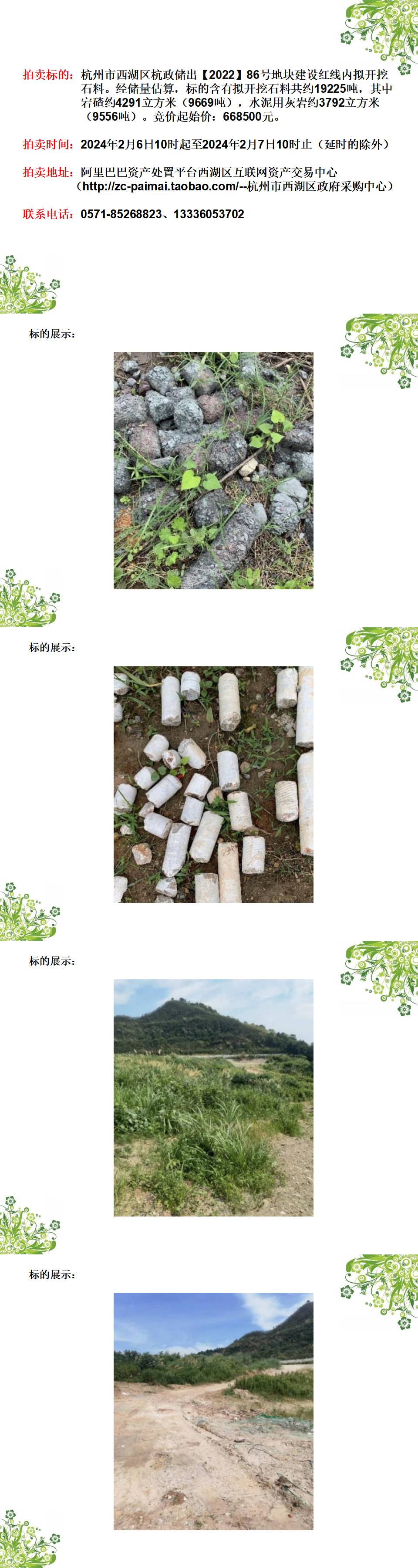 杭州市西湖區杭政儲出【2022】86號地塊建設紅線內擬開挖石料