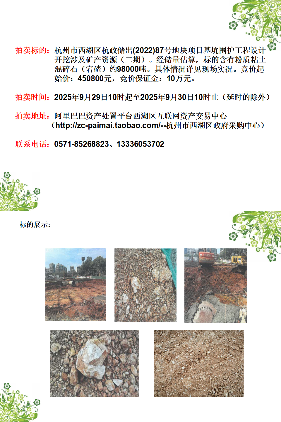 杭政儲出(2022)87號地塊工程開挖涉及礦產(chǎn)資源(二期)